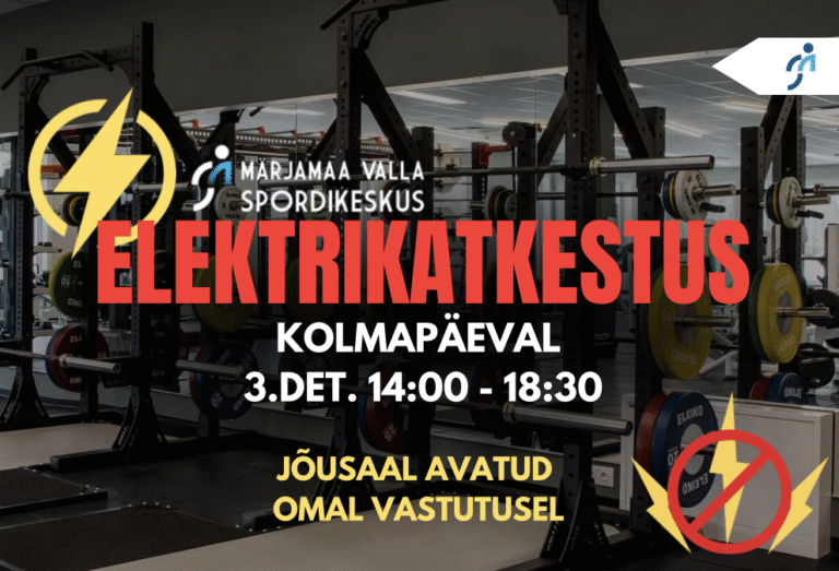 Elektrikatkestus toimub 3.detsember kell 14:00-18:30. Jõusaal on sel ajal avatud, kuid treening toimub omal vastutusel.